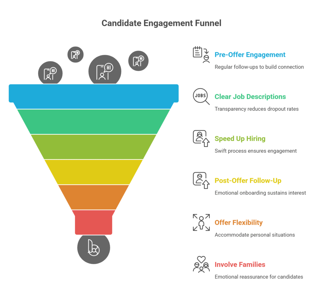 When job responsibilities, shift timings, or targets are not communicated clearly, candidates feel misled. According to a survey by TeamLease, 1 in 3 candidates cite a mismatch between expectations and reality as the reason for backing out post-offer.