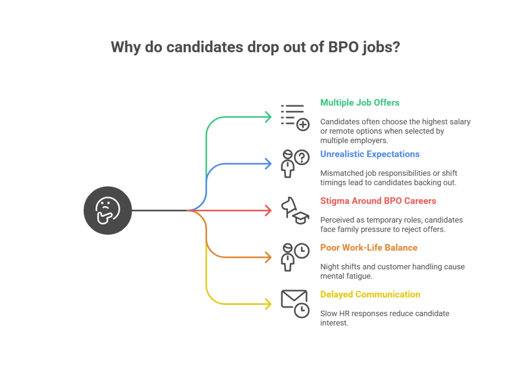 Understanding why candidates drop out in BPO is the first step toward crafting effective HR strategies that improve joining ratios and reduce recruitment costs by 25–30%.
