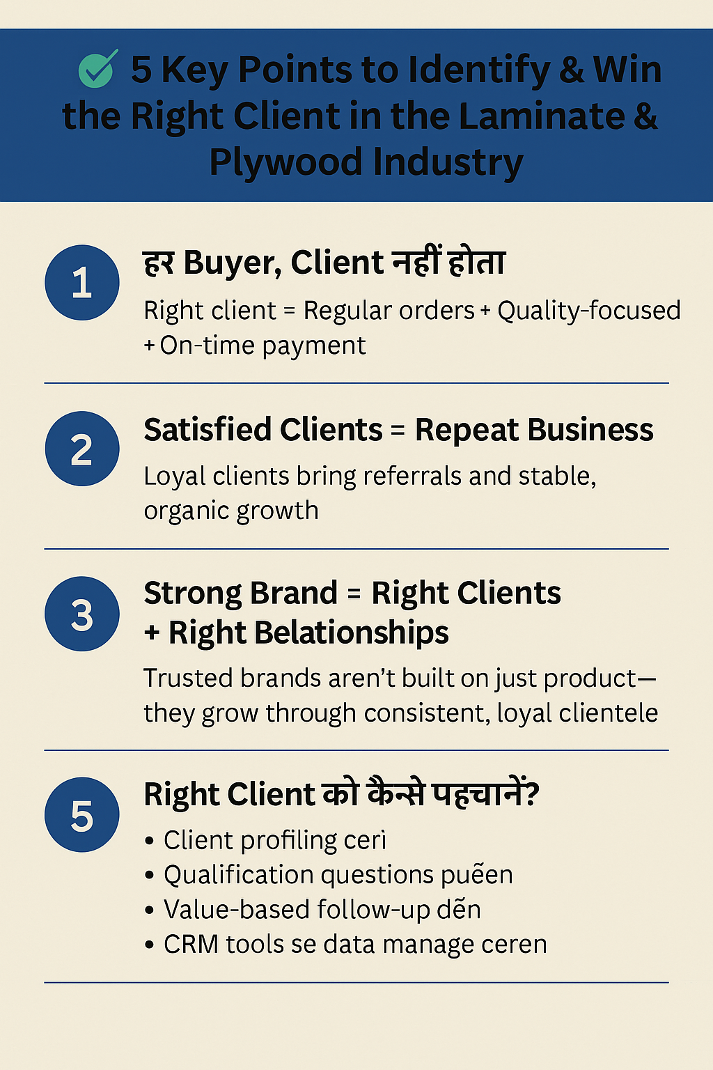 Laminate और plywood industry में रोज़ नए dealers, architects और builders से बातचीत होती है — लेकिन क्या उनमें से हर कोई आपके लिए सही client है?