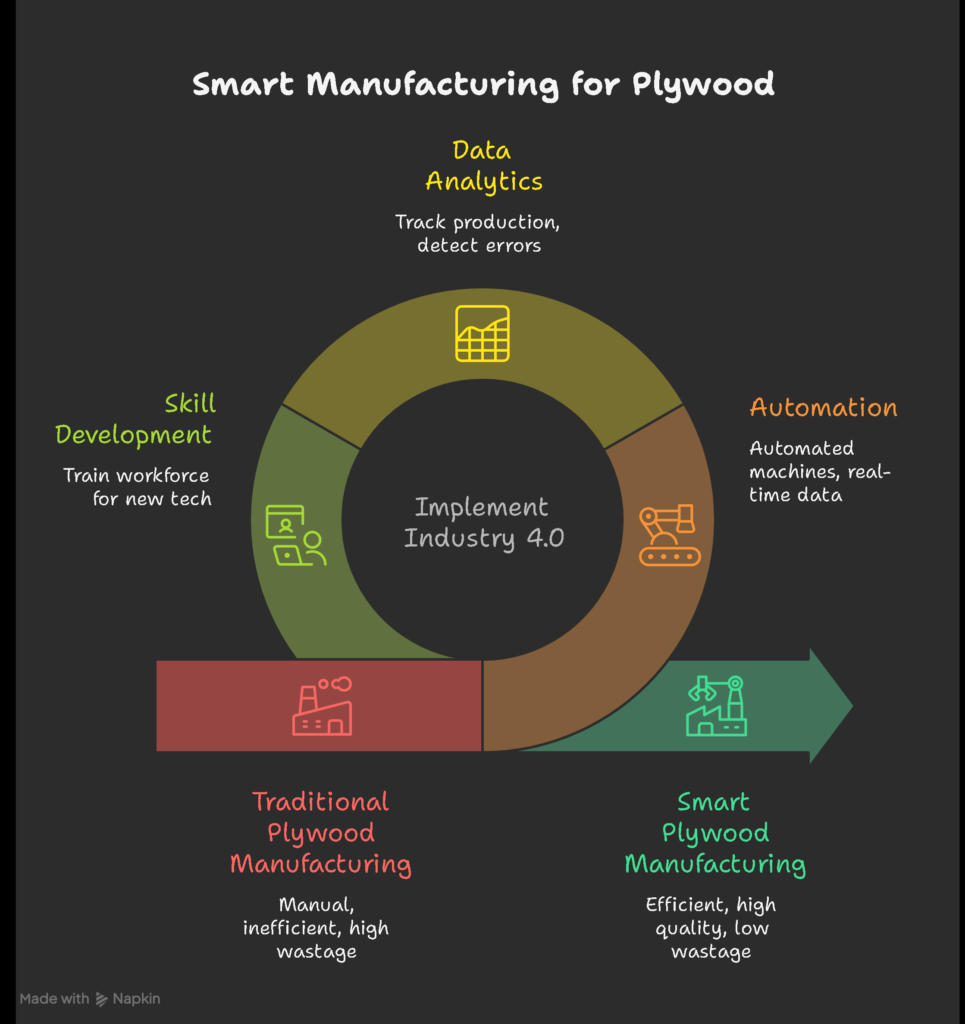 जब ये technologies plywood factories में implement होती हैं, तब यह Smart plywood Manufacturing systems में बदल जाती हैं।